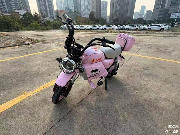 先说整体造型。运维小哥说,这车是照着嘉陵150摩托车的轮廓改的。嘉陵150可是老一辈的“国民神车”,方方正正的车头、高高的车把、宽大的座椅,骑上去自带一股“硬朗劲儿”。这小车虽然缩小了好几圈,但线条走向几乎一模一样:车头是块平整的塑料板,车把高高竖着,座椅又宽又平,后轮还加了挡泥板,远看真像辆迷你摩托。不过比起嘉陵150的“霸气”,它多了几分可爱——毕竟车高才一米出头,成年人骑上去,腿都能蜷成“青蛙腿”。