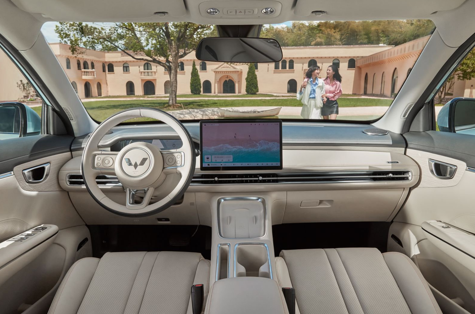 这还没完,内饰方面,缤果S有柔白与暖棕双色可选,3D质感木纹工艺,加上大面积的软质皮质包覆及高亮镀铬装饰,显得既优雅又高级,并且8.88英寸嵌入式仪表+12.8英寸高清触控大屏的配置,还强化了整车的科技氛围,令人印象深刻。