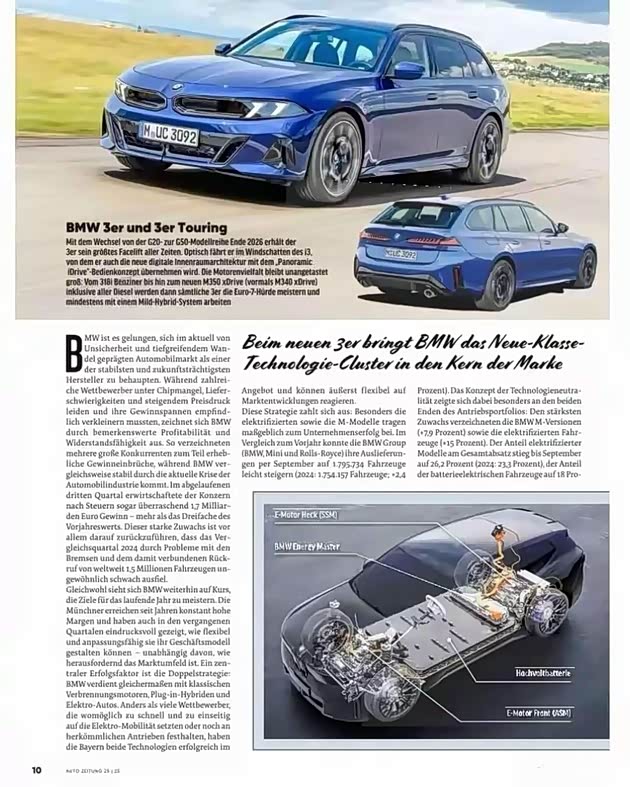 在动力选择上,这款新车提供了丰富的选择。燃油版本得以保存,并且首次加入了混合动力系统。在燃油版车型中,配备了2.0T四缸涡轮增压发动机和48V轻混系统,能够输出高达258马力的动力;高级版本的3.0T直列六缸涡轮增压发动机搭配了48V的轻混发动机,其马力可以达到380匹,并且都与埃孚8速手自一体变速箱相匹配,此外,3.0T版本还搭载了四驱系统。本次升级的亮点是插电混动版,它由2.0T发动机和电动机共同工作,预计的综合输出功率将超过320马力,25kWh的电池组可以使纯电续航达到100公里。如此卓越的全新宝马3系的旅行版本,怎能不让人满怀期待!