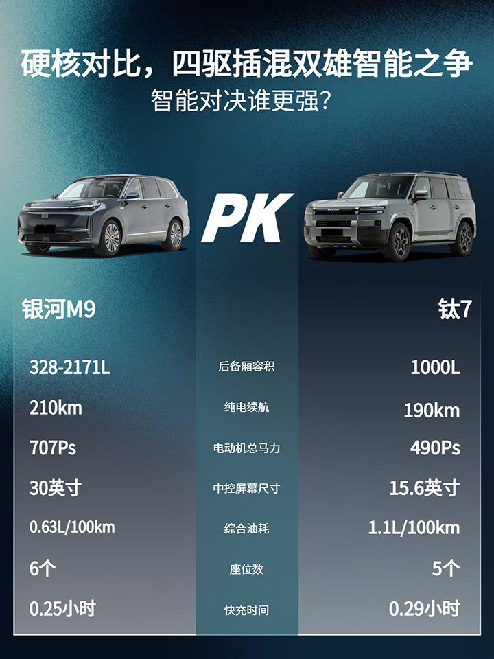 M9混动0.63L/100km vs 钛7 1.1L/100km