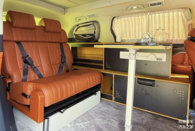 在放平情况下,车辆高度为1.98米,能随意进出小区、商场地库等场景,无缝融入城市日常生活,这让星海V9露营版的使用场景会变得更加多元化。作为日常使用的保姆车,可以很好地胜任,甚至还能作为商务车使用。在支起小桌板后,能让车辆变成颇具格调的会客厅,用户还能在车上泡壶好茶和客户交流,能满足一定的商务需求。