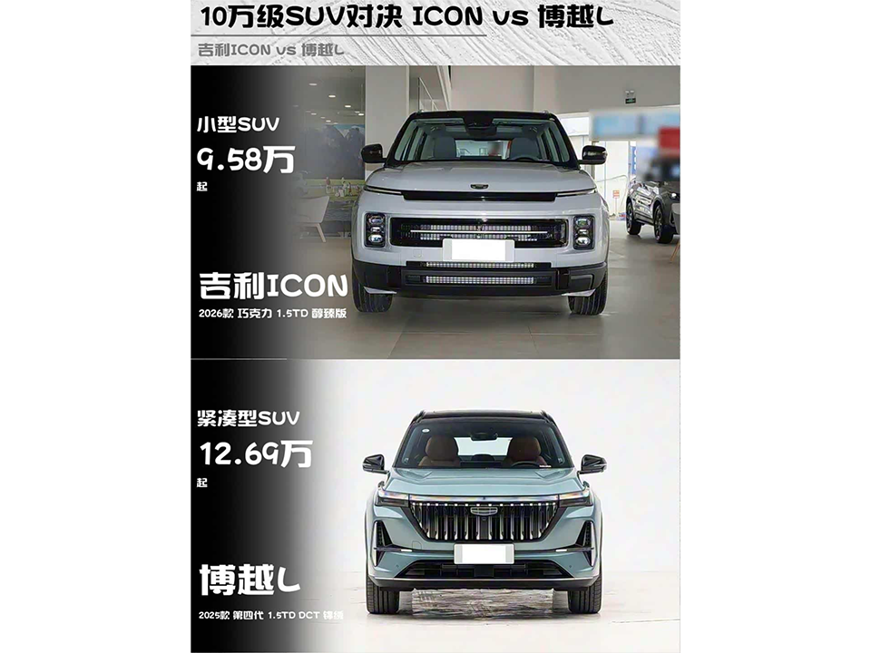 今天给大家对比两款吉利家的热门SUV——2026款吉利ICON巧克力1.5TD醇臻版和2025款博越L第四代1.5TD锦绣版!✨