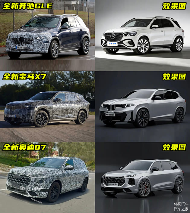 2026年想买德系BBA品牌旗舰级SUV的消费者有福了,因为全新一代 奔驰GLE、宝马X5、奥迪Q7的谍照和渲染图均已经被曝光了,下面我们就基于它们的外观来看看,这3款德系豪华中大型SUV未来谁能大卖。
