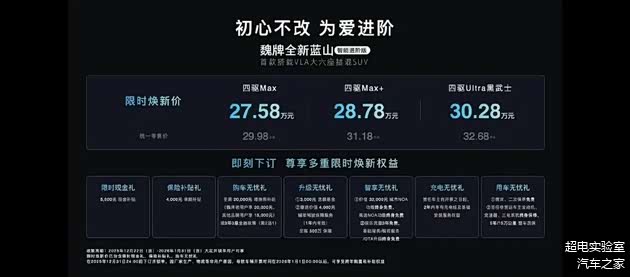 昨晚,长城汽车旗下的魏牌全新蓝山,又迎来一个全新版本——智能进阶版,指导价29.98万起,限时焕新价格为27.58万起。