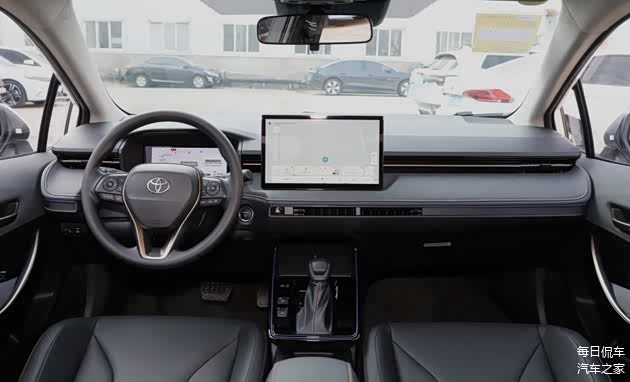 座舱变化同样很大,也变成了新能源车上常见的简约风格,仪表台变成两级台阶,出风口隐藏布置,提供12.9英寸悬浮式中控屏和8.8英寸全液晶仪表屏,仅保留较少的实体按键。仪表台和门板上都采用大面积超纤绒材质覆盖,触感不错,中高配车型有64色氛围灯。高配车型方向盘是真皮材质,造型没变化,左侧横幅上集成了辅助驾驶的按键。全系标配Toyota Pilot驾驶辅助系统,有车道保持和居中功能,包括全速自适应巡航,可实现基础L2级功能,没有领航辅助和自动泊车功能。