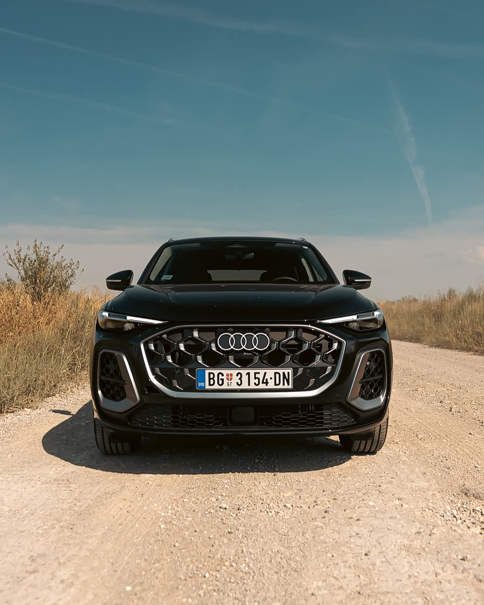 奥迪Q5海外版,新车采用了全新的设计元素,造型比较大气,是奥迪旗下重磅的走量SUV。前脸的造型很有气势,中网采用了多边形的设计,并且带有镀铬的边框造型,感觉很有气势,前包围运用了梯形的蜂窝式格栅搭配两侧银色的边框点缀,造型还是很有辨识度。侧面有着舒展的造型,车身的线条较为简洁,侧裙的设计比较硬朗,提供镀铬的侧窗线设计,感觉很有气势 。尾部采用了贯通式的尾灯组,视觉效果很有辨识度。海外版动力上搭载备2.0T涡轮增压四缸发动机并带有48V轻混系统,采用7速双离合变速箱以及quattro四轮驱动系统。