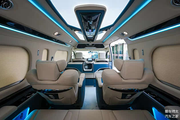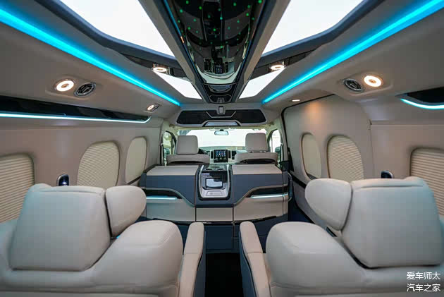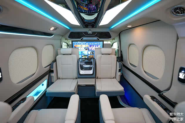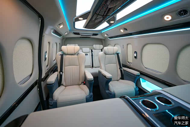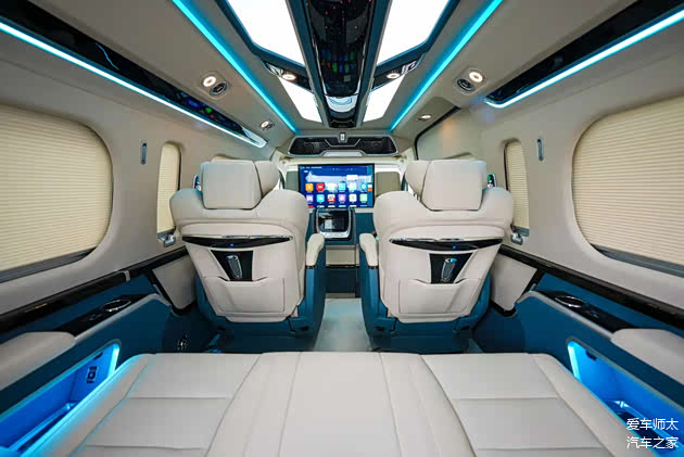 搭配24英寸吸顶电视、卡拉OK系统、220V电源接口、车载Wi-Fi等配置,满足移动办公、影音娱乐等多元需求。左侧滑门区域设有180度旋转电动小桌板,集成无线充电与折叠杯架;尾箱暗藏抽拉式咖啡机与专属冷柜,冰镇香槟随时待命,将日式“款待之心”融入每一处细节。