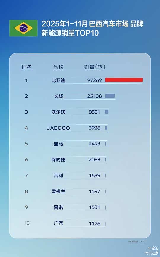 11月,比亚迪在巴西、土耳其、意大利、西班牙、匈牙利、克罗地亚等国拿下了新能源汽车销量第一,在新加坡等国家获得全品牌销冠。1-11月累计表现同样不俗,在巴西、土耳其、西班牙、意大利等国,比亚迪位列新能源汽车品牌销量榜首;在新加坡、中国香港等地区市场荣膺全品牌销量第一,备受消费者认可。