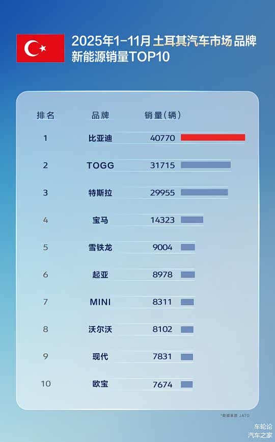 2025年1-11月,比亚迪在英国、德国、意大利、西班牙、奥地利、爱尔兰、马来西亚、土耳其、新加坡、泰国、中国等11个汽车核心国家市场,销量已经全面超越特斯拉。凭借多元化产品矩阵,比亚迪精准契合了全球不同市场消费者的差异化需求。同时,通过推进自建滚装船、本地化生产、构建完善的服务体系等一系列协同举措,为其海外拓展提供了坚实支撑。在这些出海策略的有力推动下,。