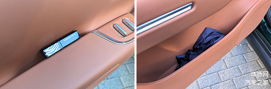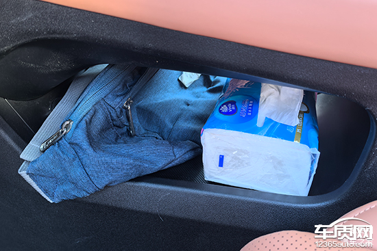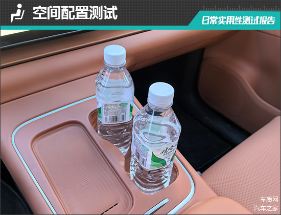 经过实测,评测车的车内储物空间数量较多,除墨镜外,其余固定物品均能找到合适的位置存放,整体表现令人满意。值得一提的是,评测车共配备5个杯架,均带有限位器。