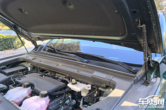 发动机舱盖的开启开关位置位于驾驶位前部左下方,开启时需要拉动车内开关两下,然后直接抬起发动机舱盖即可。经实测,评测车的发动机舱盖采用双液压杆支撑,操作省力且稳定性不错。