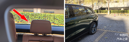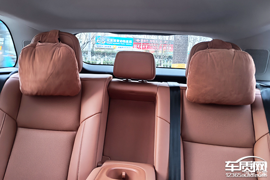 评测车的后排座椅提供3个独立头枕,均支持上下调节。不过,由于中间头枕的尺寸较小且内部填充物偏硬,因此对中间乘客的乘坐舒适性会造成一定影响。