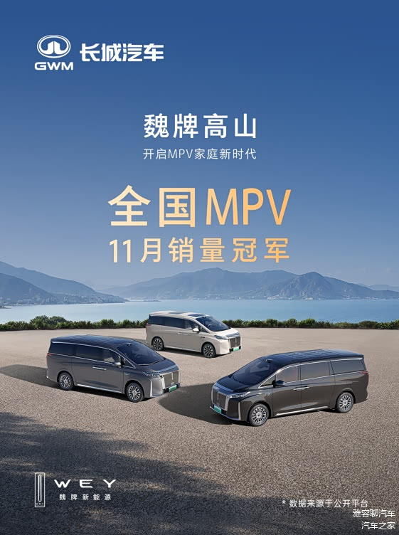 魏牌高山再一次用数据证明了自己的实力:11月销量超过1万台,连续两月稳居中国MPV市场销量冠军。这款新能源MPV的强劲表现,不仅打破了合资品牌多年的行业垄断,更成为中国品牌崛起的又一标志性事件。