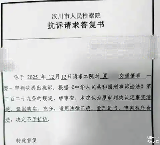 肇事人被以交通肇事罪判处有期徒刑两年六个月!判决认为事实清楚,证据确实、充分,适用法律适当,量刑适当,审判程序合法——这是在受害者家属抗诉之后,汉川市人民检察院给出的抗诉请求答复书中的观点。