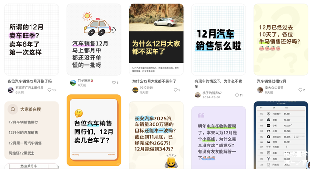 打开「小某书」等社交媒体平台,输入关键字「12 月汽车销量」,迎面而来的是汽车销售的不解和抱怨。