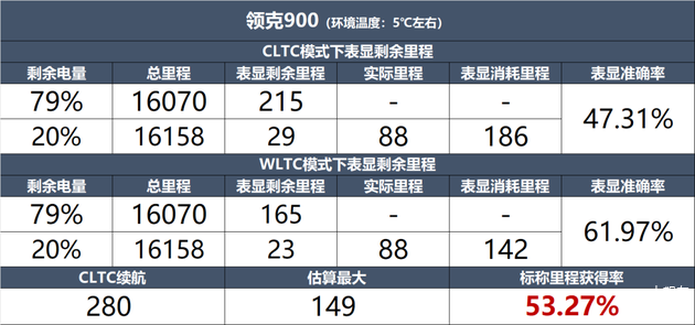 这辆车搭载了一块三元锂电池,容量为52.38千瓦时。CLTC标称续航里程280公里。北京冬季实测,气温5℃左右,充电至79%,CLTC、WLTC模式下,表显剩余里程分别为215公里和165公里;当行驶至电量剩余20%时,CLTC、WLTC模式表显剩余里程分别为29公里和23公里,表显消耗186公里和142公里,实际行驶了88公里。表显准确率分别为47.31%和61.97%,CLTC续航标成里程获得率为53.27%。