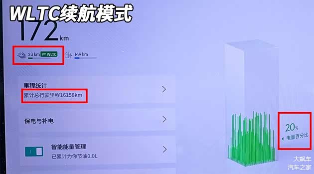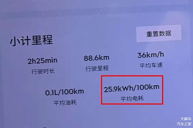 根据表显近百公里的平均电耗25.9千瓦时,由国标计算公式可以得出,按照燃料生命周期计算,当量汽油百公里消耗为6.21升;如果按照二氧化碳排放量计算,当量汽油百公里消耗为8.02升。