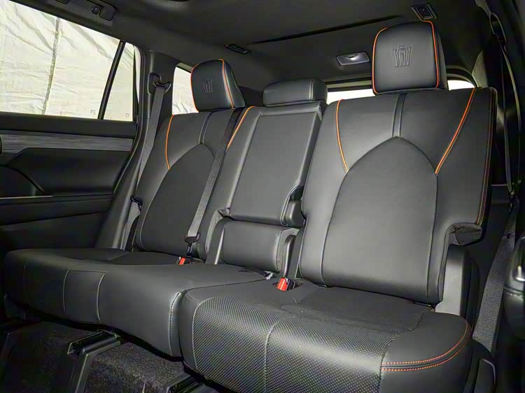 轴距达到了2850毫米,座椅布局为2+3+2,皮质座椅宽大舒适,并且还使用了红色缝线点缀,所搭载的2.5L自然吸气发动机,最大功率139kw,最大马力189匹,最大扭矩236牛米,并且采用前后双电机驱动,与之匹配的是E-CVT变速箱,WLTC百公里综合油耗仅6L左右(图片来源于网络)。