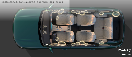 更值得一提的是,风云T11搭载的伯牙之音豪华音响系统,堪称50万内车型的“最强音”配置:其7声道环绕四周构建二维声场,5单元中低音阵列搭配超重低音,低音深沉有力;4个顶部扬声器实现三维音效,碳纤维振膜扬声器让音色纯净、响应迅速;前后排三分频设计提升声场定位,2880W峰值功放确保大动态音源不失真,尽享极致听觉盛宴。