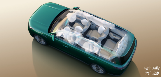 被动安全配置更显诚意,全系标配11个安全气囊,包含中国SUV品类首款量产的后风窗气囊。该气囊展开面积0.64㎡,精准填补第三排安全盲区;配合2200mm同级最长侧气帘、主驾膝部气囊等,实现从第一排到第三排的无死角防护,彻底解决家庭用户对“第三排安全薄弱”的担忧。