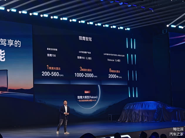 值得一提的是,星途这次公布了智舱和智驾的新方案。星途是首家宣布将上车高通骁龙8397芯片的品牌,之前只有零跑表示会用双8797的方案。音响系统方面,会有伯牙之音颂系列,采用31个扬声器、最大功率3000W。而星途在智驾方面分为三档:第一档为单激光雷达,算力为200-560TOPS,应该是Orin Y和地平线J6P;第二档为1000-2000TOPS加三颗激光雷达,瞄准L3;第三档为8颗激光雷达、2000+TOPS算力,面向L4级Robotaxi。