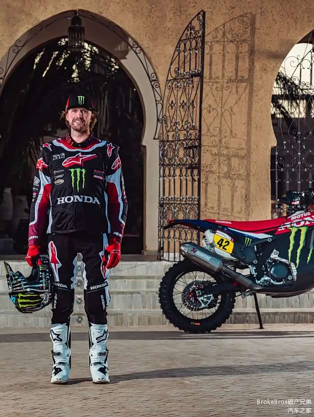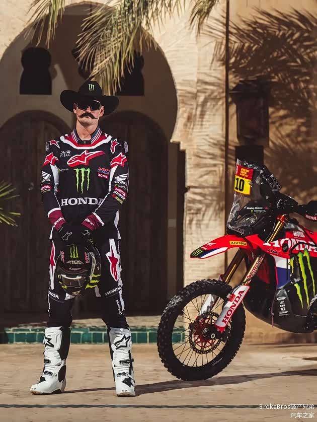 与布拉贝克并肩作战的,是同样来自美国的小胡子斯凯勒·豪斯(Skyler Howes),他将驾驭10号赛车续写征程。在KTM阵营成长起来的豪斯,即将开启他在本田厂队的第三个赛季。虽然未曾斩获赛段优胜,但豪斯凭借稳定的发挥和强悍的耐力,在过往赛季多次跻身总成绩前列,是车队阵容中不可或缺的中坚力量。