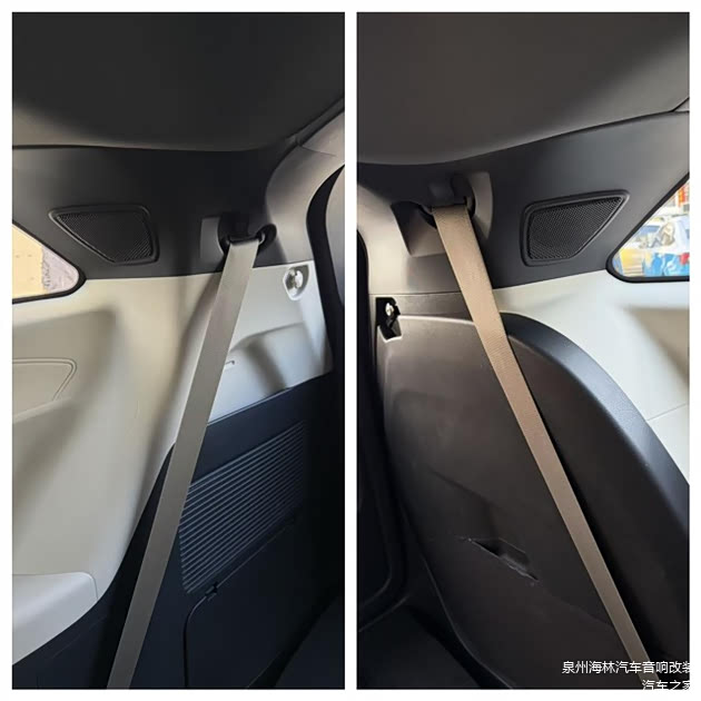 为了打造全方位的环绕声场,还在D柱位置增加了一对劲浪亚麻盆中音作为后环绕,经过精准定位安装,让后排乘客也能沉浸式感受音乐的魅力,D柱的安装效果整洁美观,与原车内饰风格高度统一。