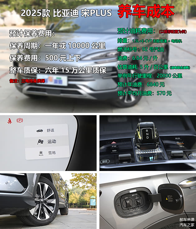 养车成本方面,新车保养周期为一年或10000公里,单次保养费用约为500元上下,同时还能享受六年或15万公里整车质保和三电终身质保等福利。油耗方面,郝哥同样以推荐配置为例,新车油电综合油耗显示为3升/百公里,为了更接近真实,郝哥以再增加两个油计算,也就是5升,可以说只多不少了吧,目前北京地区92号汽油的油价为6.84元/升,假如每年行驶20000公里,那么预计您的年油费为6840元,平均月油费为570元就够了,这油耗水平还是挺不错的吧。