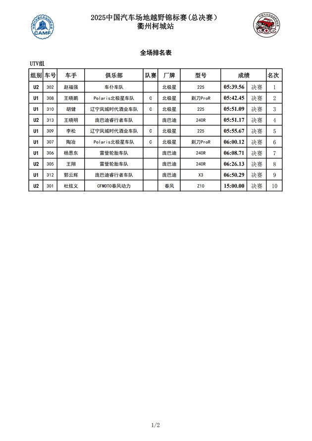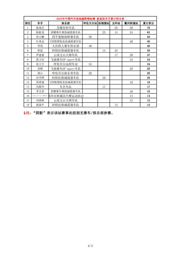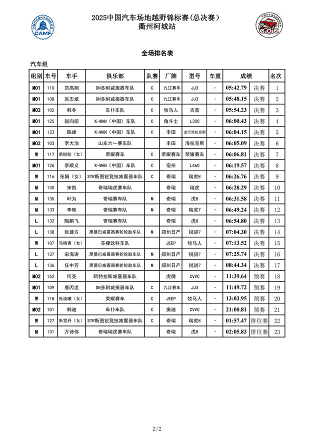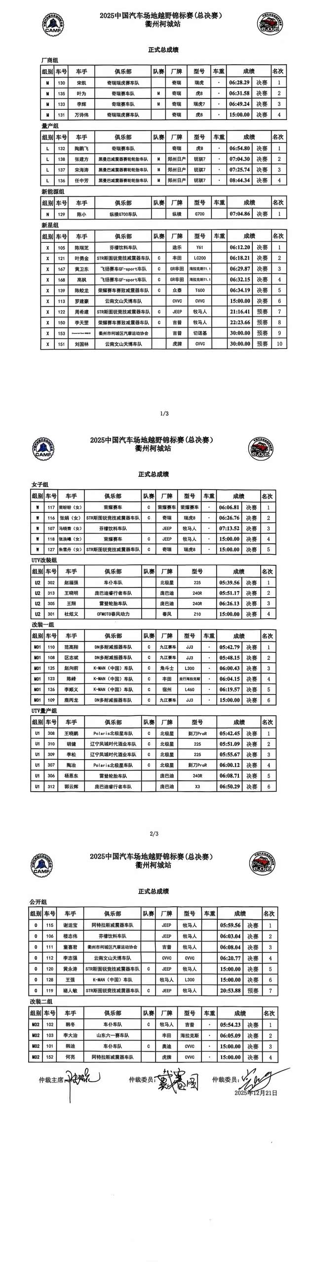2025COC中国汽车场地越野锦标赛年度总成绩及各车队、分组成绩