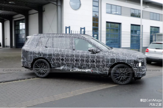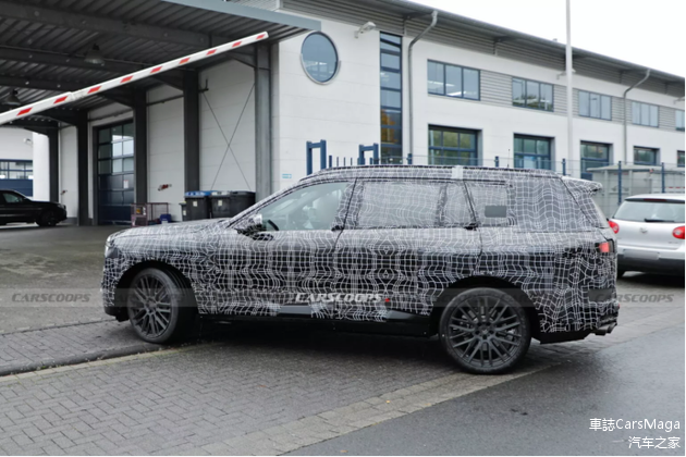 在售的第一代X7于2019年正式开售,车型代号G07,2022年4月经历了一次中期改款,车头改用了分体式大灯设计。只不过,这次曝光的路试车型同样使用了源自中期改款车型上的分体式大灯设计,难不成又是一次中期改款?但形状更方的鬼面罩设计,以及全车重度伪装,又在暗示这是一款采用Neue Klasse设计语言的新一代车型,那就只能说明大哥X7保留了自身的设计特点了吧......看着这如此光滑的车侧,很明显新车使用了隐藏式门把手的设计,看来这也是Neue Klasse设计语言的一部分。