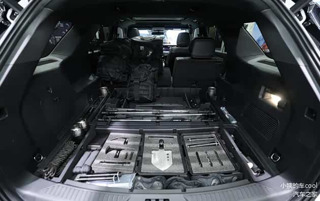 与注重“硬核豪华”体验的昆仑巅峰版形成鲜明互补,昆仑穿越版更侧重于功能的纯粹与空间的极致。作为一款大五座SUV,昆仑穿越版打破了传统SUV的空间布局思维,在常规状态下,后备厢容积已达1505L;当第二排座椅放倒后,装载容积更可扩展至2487L,可瞬间形成一个纵深近2米的纯平空间,变身“移动大床房”,轻松容纳山地自行车、滑雪板、全套露营桌椅等大型装备。细节上,车辆还设计了15个隐藏储物格,拓展近100L灵活储物空间,确保各类物品与随身器材的分区收纳,让所有探索装备井井有条。