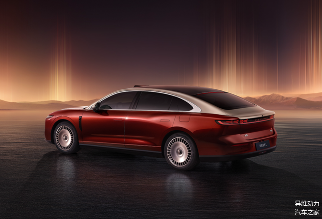 车身侧面是岚图追光L的点睛之笔,超5米12的车长搭配3米01的轴距,营造出修长优雅的车身比例。流畅的溜背线条从车顶缓缓延伸至车尾,搭配无框车门与隐藏式门把手,不仅强化了运动基因,更将风阻系数控制在优秀水平,为续航优化奠定基础。车身腰线从前翼子板延伸至后轮拱,勾勒出饱满的肌肉线条,既增强了视觉张力,又通过结构强化提升了底盘刚性,实现了美学与实用的统一。轮毂提供19英寸与20英寸两种选择,其中20英寸大饼式轮毂搭配双色车身(金銮红、金耀黑),更显尊贵气质,开在路上回头率十足。