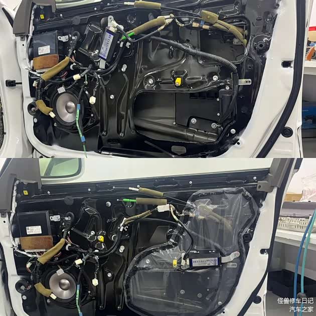 咱们去除掉乱做的隔音,恢复成原厂的防水膜。