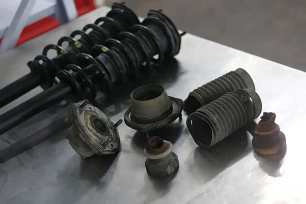 这是车主之前换的减震器,减震器的缓冲块都碎了,单不说已经漏油了,就从专业的角度说:为何更换减震器的时候,不把缓冲块、防尘套一起换了?原因很简单...在给车主埋坑!缓冲块坏了,这样减震器的使用寿命就会减短,下次接着来修呗...难怪车主这些年一直在去他们家修理厂的路上。