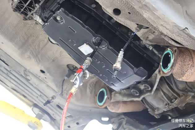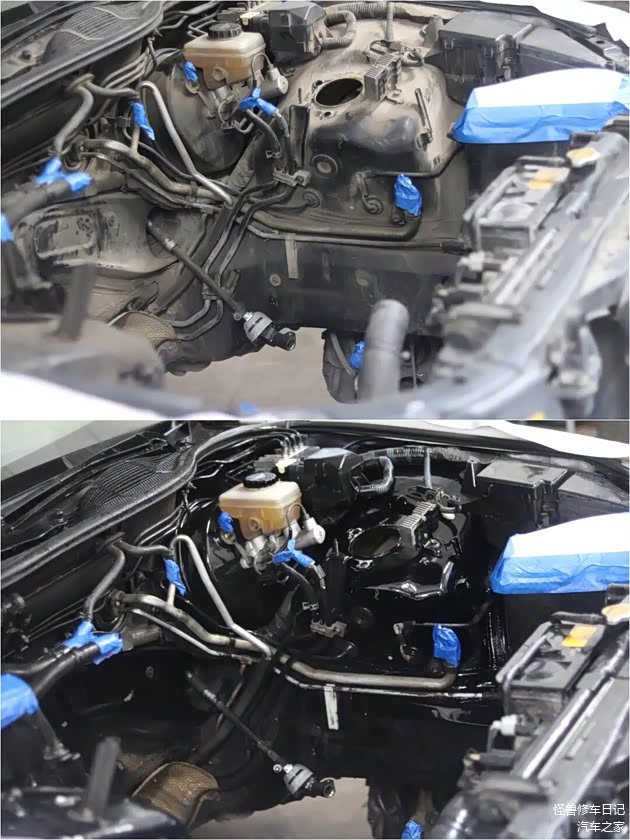 发动机油污先清洁掉,不然没法下手干活。