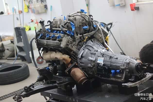 发动机先抬下来了。