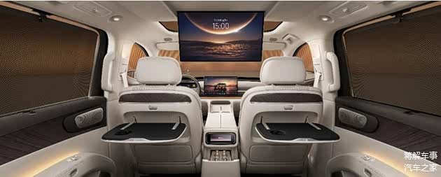座椅配置堪称“移动头等舱”,采用百万级豪车同源的半苯胺头层真皮材质,高定V形绗缝、大师级辊边与奢侈品手包为灵感的珍珠打孔工艺,兼顾视觉美感与体感舒适。座椅拥有12层奢享级结构设计,配备加热、电动调节功能,前两排更搭载吸风式通风与10点式SPA级气动按摩。二排120°真零重力座椅支持坐垫15°抬升与4向超大行程腿托,搭配ABTS一体式安全带,带来全身承托的悬浮休憩体验。第三排支持131°无级电动调节并首搭双扶手,配合EZE便捷进出系统,让每一排都能享受平等的豪华待遇。