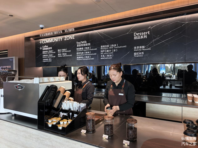 新店占地超万平方米,区别于传统4S店,打造集出行、社交、生活于一体的高端服务空间。中心采用金咖色调,设有开放式美学空间、独立VIP和VVIP接待区,个人专属交付空间等,车主可在车辆养护期间享受一段休闲惬意的时光。