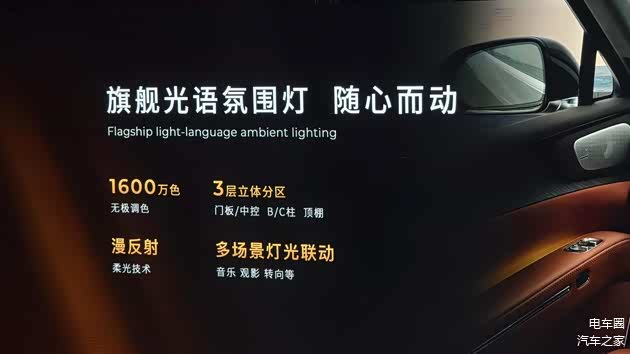在车顶还安排了可以360度调节的航空级阅读灯。独立光域,互不打扰,还有5300k自然光色温。在C柱、D柱还设计出了壁灯,更精细的关照了每一位乘客。