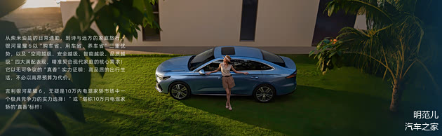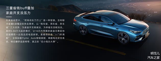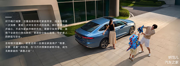 对于精打细算、注重品质的现代家庭而言,选车不仅是一次消费,更是一次对生活方式的选择。我们希望它经济省心,不成为家庭开销的负担;需要它实用全能,装得下全家的行李与欢乐;更期盼它贴心适用,守护家人的舒适与安全。吉利 银河星耀6,就是这样一台满足家庭用户“既要、又要、还要”的车型,在10万内预算的家轿市场,成为无数家庭的“真香之选”!
