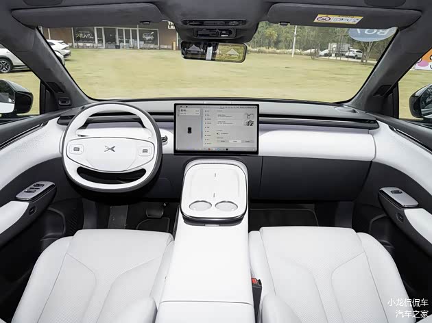 进入到车内,迎面而来的是小鹏G7增程版极简风格的内饰设计,不过由于新车在中控位置配备了大尺寸的悬浮式大屏和贯穿式空调出风口,所以内饰还是有着一定科技感和时尚感的。配置方面,例如中控大屏、后排娱乐屏、全景天窗、自动分区空调、后座空调出风口、电调座椅等配置新车均有配备。