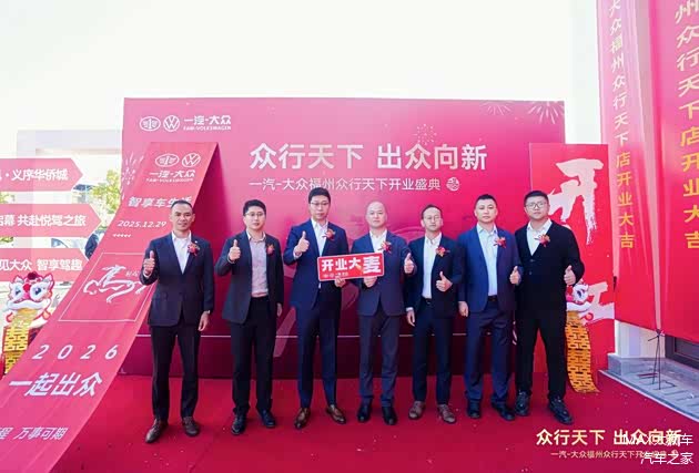 新的面貌、新的服务,一汽-大众福州众行天下4S店,在2025年12月29日盛大开业!开业典礼现场高朋满座,一汽-大众华南区厂家领导、主流汽车媒体代表、合作伙伴及客户嘉宾齐聚一堂,共同见证这一重要时刻。活动现场氛围热烈,舞狮点睛、剪彩揭幕等传统仪式交相辉映。
