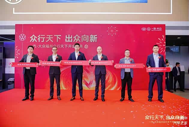 开业仪式上邀请了一汽-大众 大众品牌华南销售事业部总经理李玉春、福州市众行天下汽车有限公司董事长陈桂宾、福建省华侨实业集团副总经理黄晓东、一汽-大众 大众品牌闽东小区主管销售经理刘任鹏、一汽-大众 大众品牌闽东小区销售经理杨震、福州市众行天下汽车有限公司总经理陈高昱。盛典现场高朋满座,行业领导及战略合作伙伴、主流媒体朋友与各界嘉宾应邀出席,共同参与了这一开业盛举。