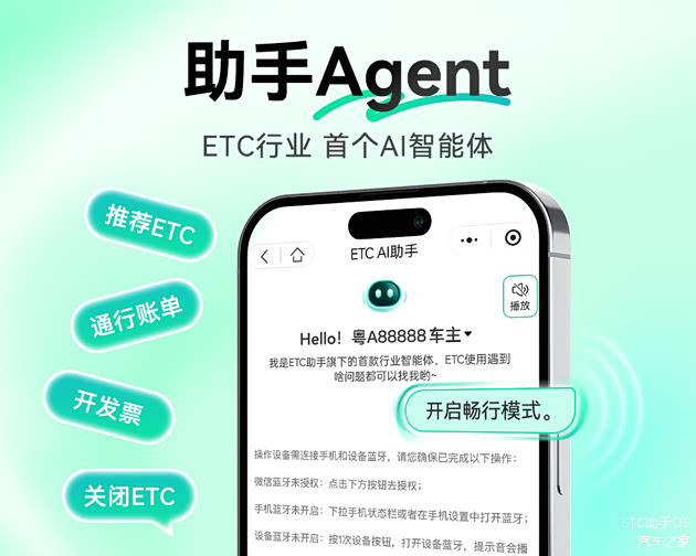 从线上申办、微信扣费,到现在的AI智能体,ETC助手始终致力于将前沿技术转化为用户切实可感的便捷服务,让智能化融入出行生活的每一个细节。