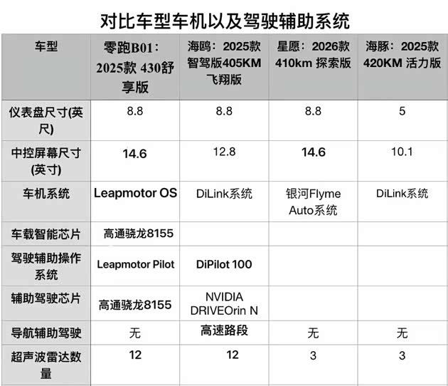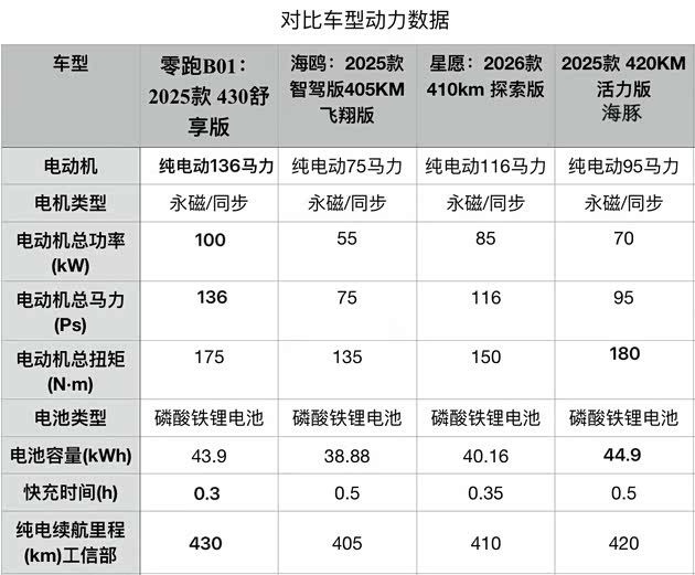 时间过得好快,2025年即将过去,汽车市场的变化挺大的。从大街上过往的车辆可以看得出来,挂绿牌的车型越来越多,大部分以家用为主,拥有成本低、加速快、舒适性高的特点。也有朋友在问如果预算在10万以内,考虑纯电车型 零跑B01表现怎么样?这台车定位紧凑型车,基于LEAP 3.5电子电气架构打造,提供650KM续航里程和激光雷达车型,车身轴距达到了2735mm!如果从相近的价位来看,对比比亚迪海豚、比亚迪海鸥以及星愿车型亮点有哪些?今天我们一起来看看,谁更值得考虑?