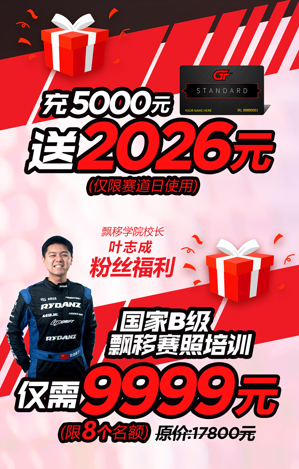🎁感恩相伴回馈金港会员 💰充5000元立送2026元 🏁B级飘移赛照仅需9999元 🏎️丰田86租车特价1299元