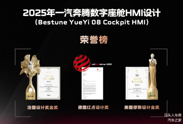 首届“奔腾科技日”的举办,是品牌向“技术奔腾”转型的宣言。越影平台、逐日动力、如意座舱等全新技术集群的公开亮相,展现了深厚的技术底蕴。其中,逐日动力电驱最高效率达95.5%,荣获“中国十佳新能源动力系统”;数字座舱HMI设计亦斩获德国红点设计大奖、法国设计奖金奖和美国缪斯设计金奖。深厚的技术底蕴,正为品牌构建坚实的竞争护城河。