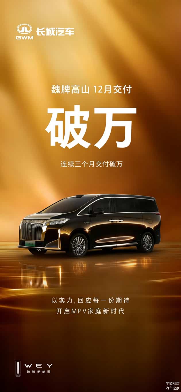 汽车行业的月度销量榜单,往往是观察市场风向最直观的窗口。在MPV这一细分领域,一个长期由传统势力主导的排名,正经历着一场静水流深般的变局。刚刚揭晓的销量数据显示,魏牌高山在十二月再度实现月销破万的成绩。更值得注意的是,这已是其连续第三个月站上这一高位。这种持续性的市场热度,已不能简单用“新车效应”来解释,它更像是一种稳定的、基于用户认可的市场地位的确立。