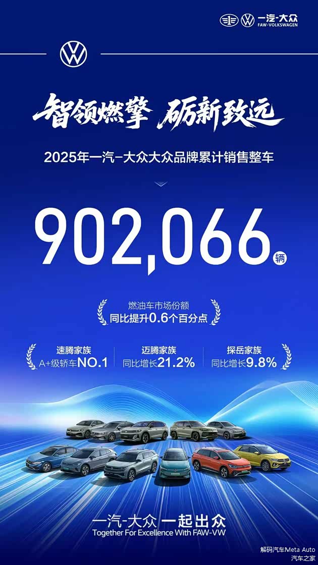 整体来看,2025年一汽-大众大众品牌并未简单对抗行业趋势,而是在燃油车存量市场中,通过产品升级、智能化进阶与服务体系强化,重新定义了燃油车的“时代价值”。面向2026年,随着“油电混共进、全智化升级”战略持续推进,大众品牌正在为下一阶段的稳健增长与转型打下更具确定性的基础。