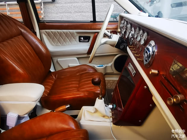 驾驶室里面仪表台部分车主看来也是费了不少心思,大众复古的仪表台风格和方向盘,圆形的仪表,飞机操控按键,处处流露出历史的印记,唯一有现代干的就是那块在木质框框包裹里的显示屏。